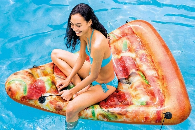 If you’re going to eat a pizza while lounging in the pool, might as well float around in a giant inflatable pepperoni slice, too. That’s exactly what this pool float gets you. Measuring 69 x 57 inches (length x width), it’s large enough to fit a single pizza-lover as they lounge in the water, while two connectors on each side allow you to combine up to eight of these to create a single, large pizza. Seriously, you can have a giant pizza floating in your pool. This float, by the way, features a photographic print, so it looks like a real pizza that’s been cooked in an oven, with its browned crust, melted cheese, and greasy pepperoni topping.