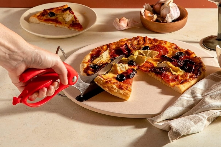 Whether you like ordering from the place that delivers unsliced pizzas or you make your own pizzas at home, this 13.5-inch round cutting board is designed to help you cut it into eight even slices. How? By coming with guidelines right on the board, so you know exactly where and at what angle to start cutting. This set also throws in a rocker pizza cutter that tends to cut cleaner than the roller-style blades that are popular today, with a blade that’s large enough to cover the whole board in one side-to-side movement.